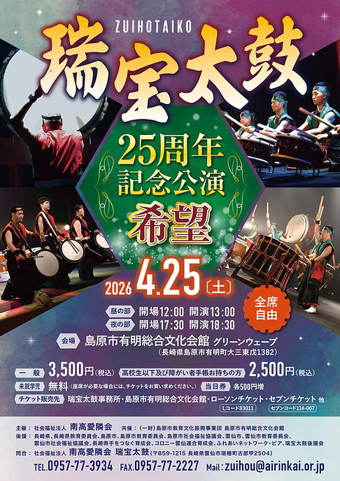 【チケット販売先】瑞宝太鼓事務所・島原市有明総合文化会館・ローソンチケット・セブンチケット他
